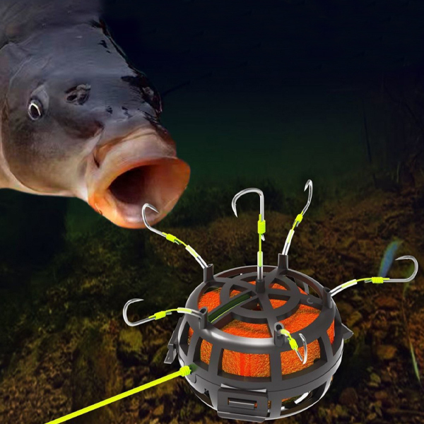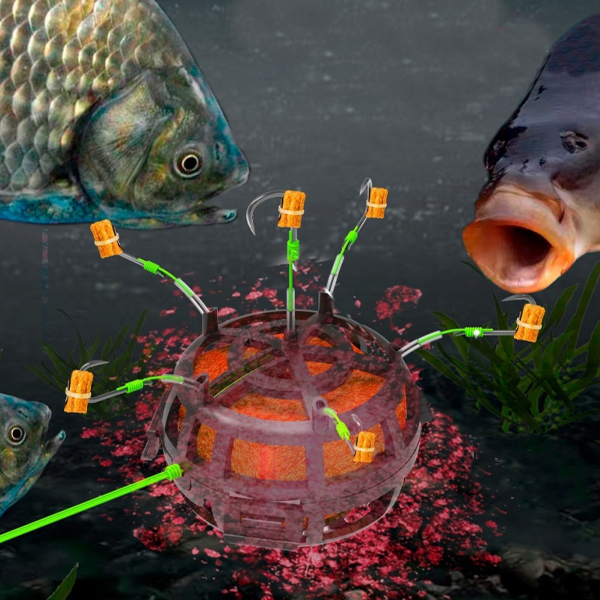 Збільшуйте свої шанси на вдалу риболовлю, використовуючи інноваційну снасть, що складається з годівниці та шести міцних гачків, закріплених по периметру та в центрі. Вона ідеально підходить для донного лову мирних риб та деяких всеїдних хижаків — коропа, амура, карася, ляща, тиляпії, сомиків тощо